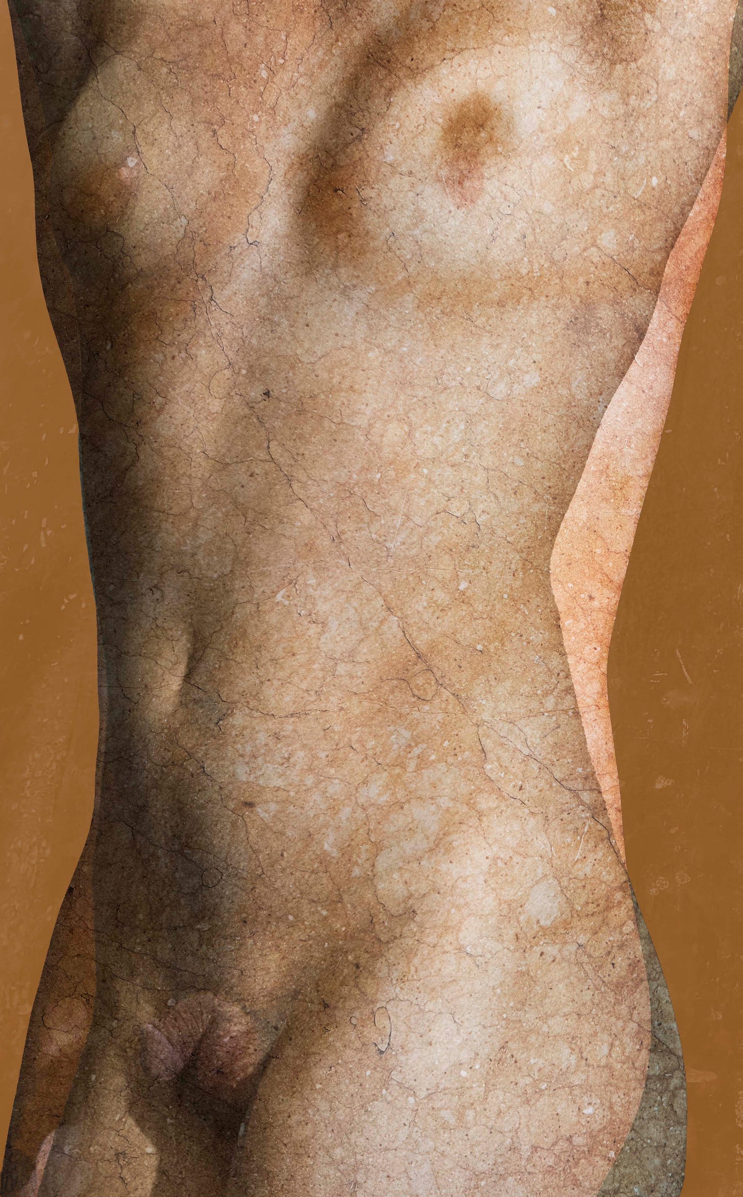 The composite that follows was one of the earliest moments when the project began to move beyond equivalence. Rather than placing the images side by side, I layered them, allowing forms to merge, contours to soften, and identity to become less fixed. As I worked with texture and color, the image took on an unexpected quality. It felt less photographic and more archaeological, as if it might have been a fragment lifted from the wall of a Roman villa in Pompeii.